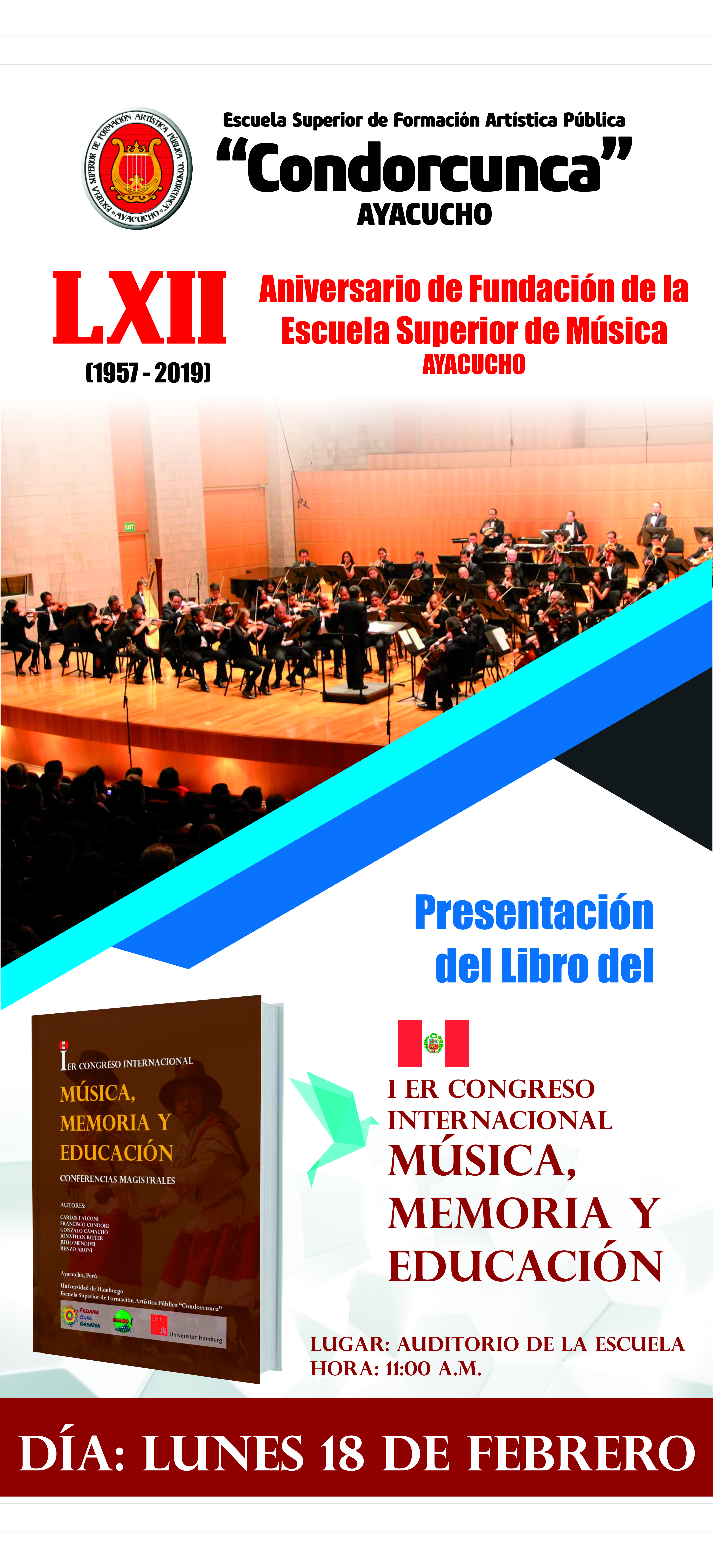 EL 18 DE FEBRERO SE CELEBRA UN AÑO MÁS DE SU CREACIÓN Y FUNCIONAMIENTO (LXII), POR LO HACEMOS LA INVITACIÓN A LA COMUNIDAD EDUCATIVA DE LA ESFA. PÚB. "C" Y PÚBLICO EN GENERAL A LA PRESENTACIÓN DEL LIBRO: MÚSICA, MEMORIA Y EDUCACIÓN, ASÍ COMO DE LA PRODUCCIÓN EN CD DE LOS TALLERES DE LA INSTITUCIÓN, POR ESE MOTIVO SE REALIZARÁ EL RECITAL EL 18/FEB/2019 A HORAS 9:00 A.M. EN EL AUDITORIO INSTITUCIONAL. EN ESTA ACTIVIDAD SE ESTARÁ OBSEQUIANDO EL LIBRO A LAS PERSONAS ASISTENTES A ESTE EVENTO.